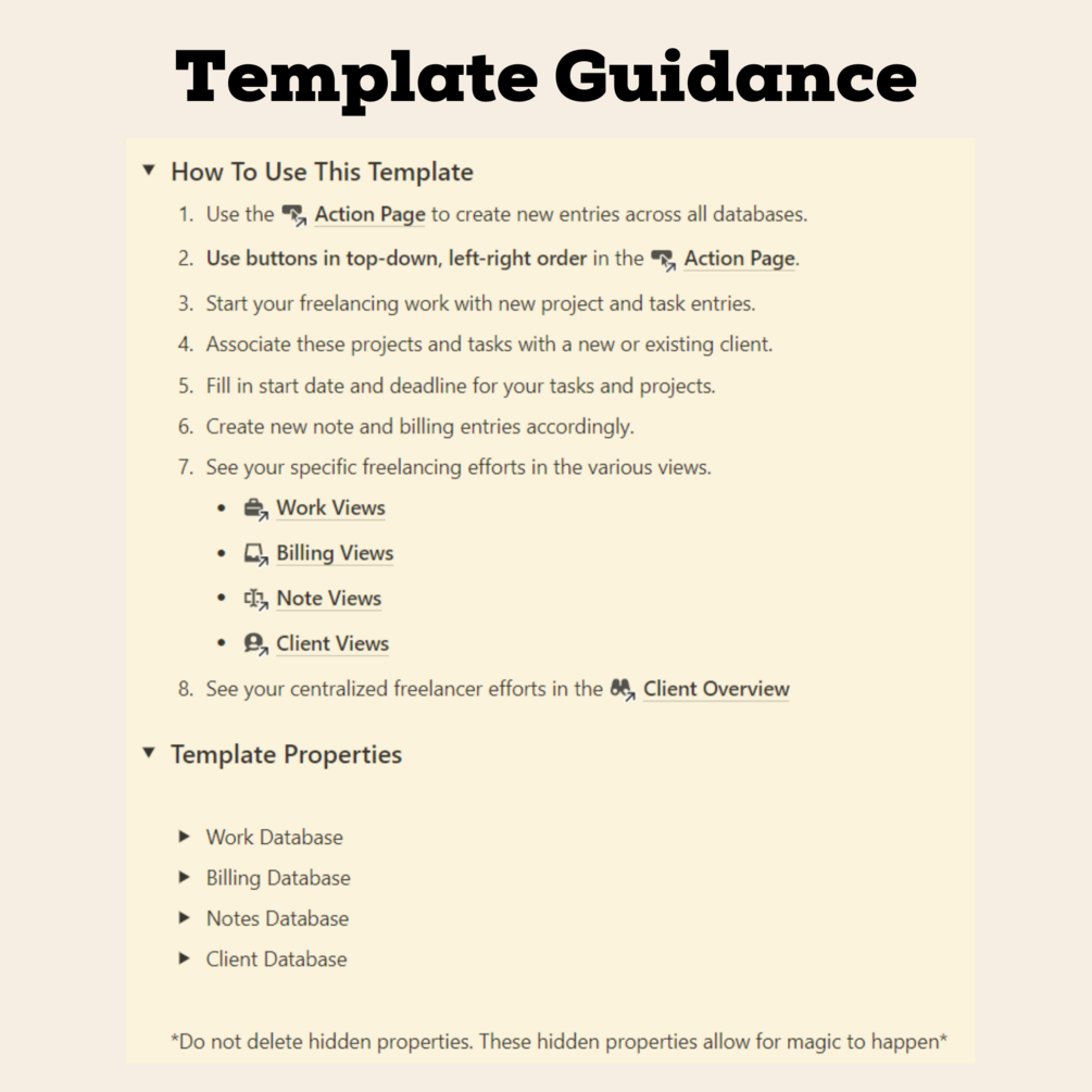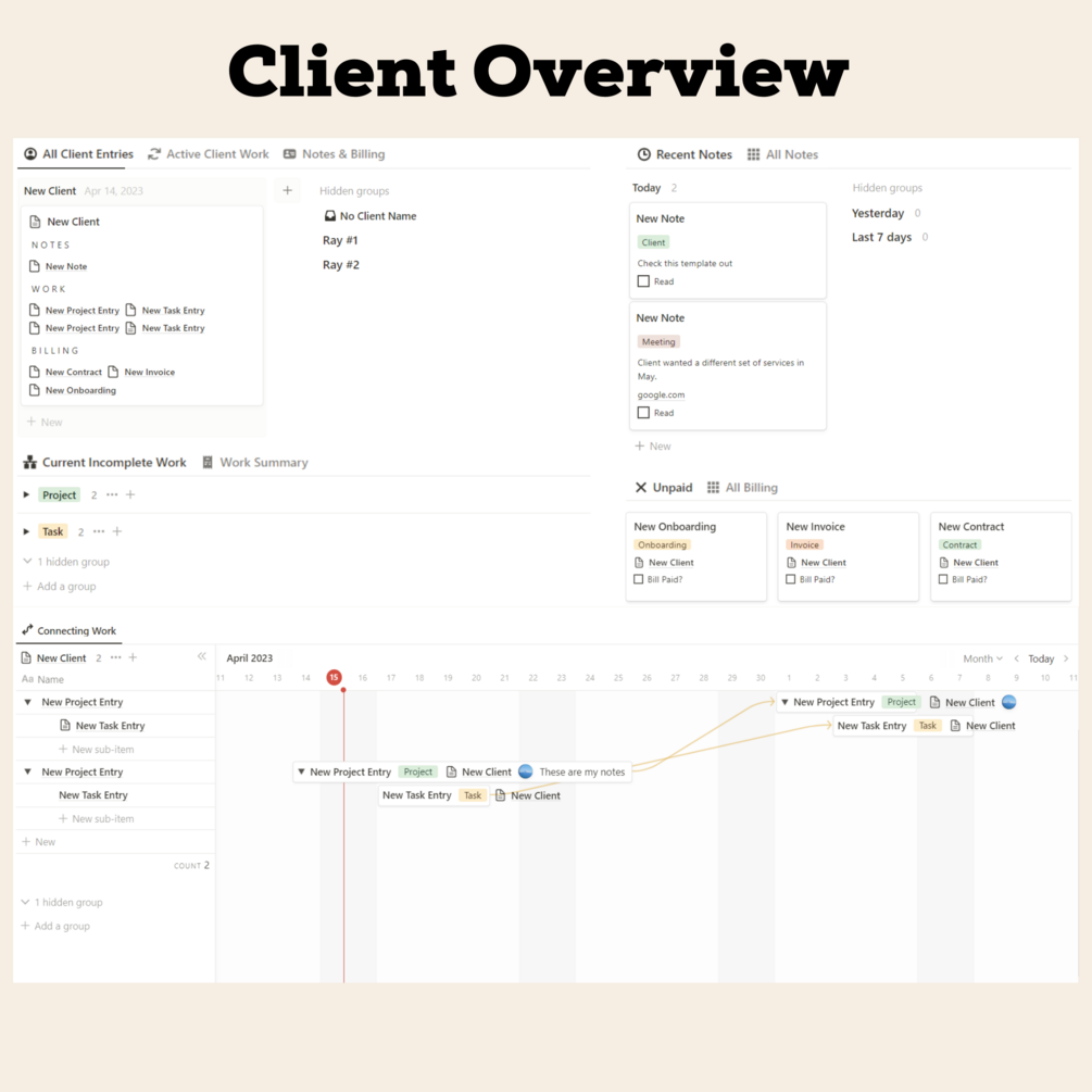 From work planning to notes and billing, this freelancer template offers a cost-effective solution for managing, organizing, and navigating your freelancer work.