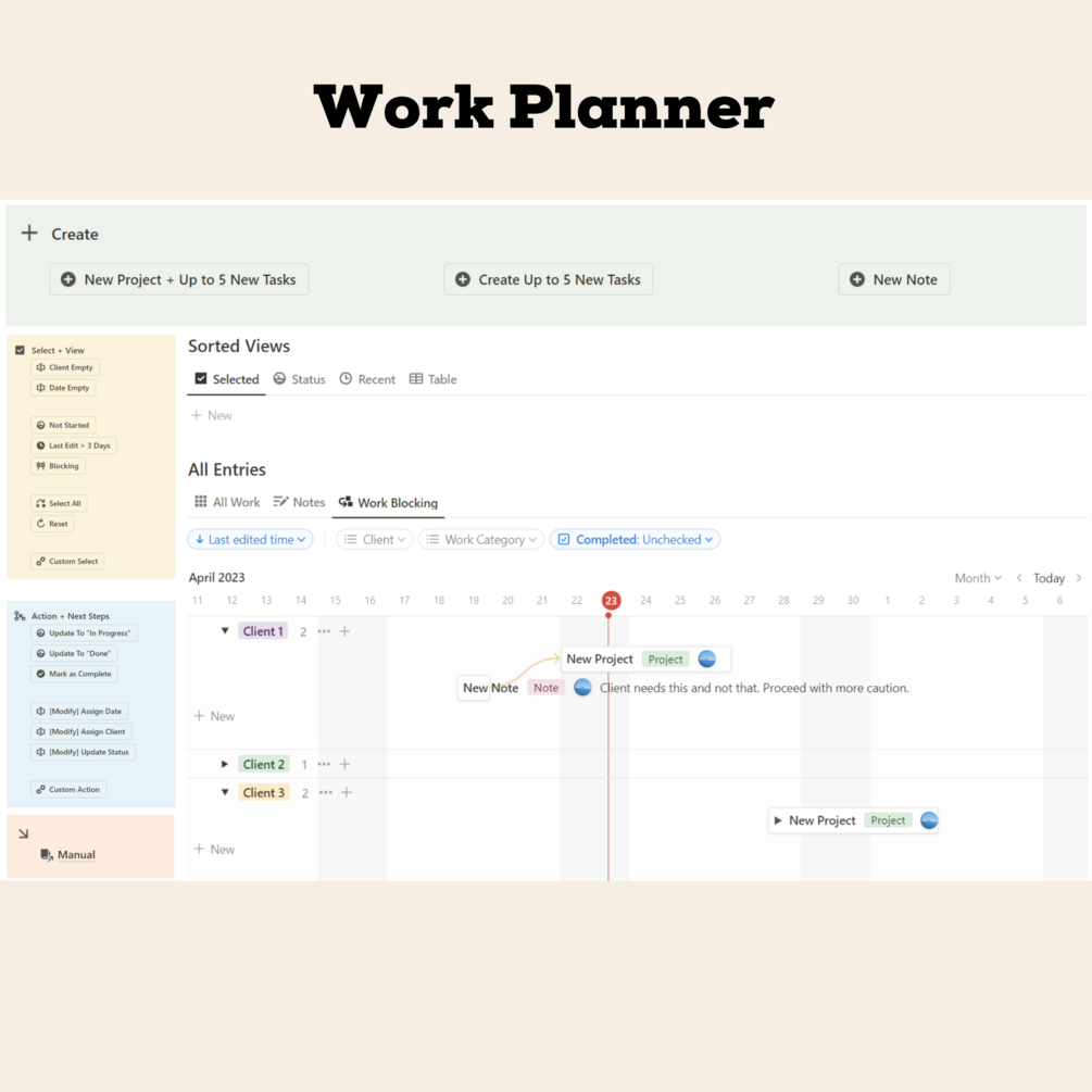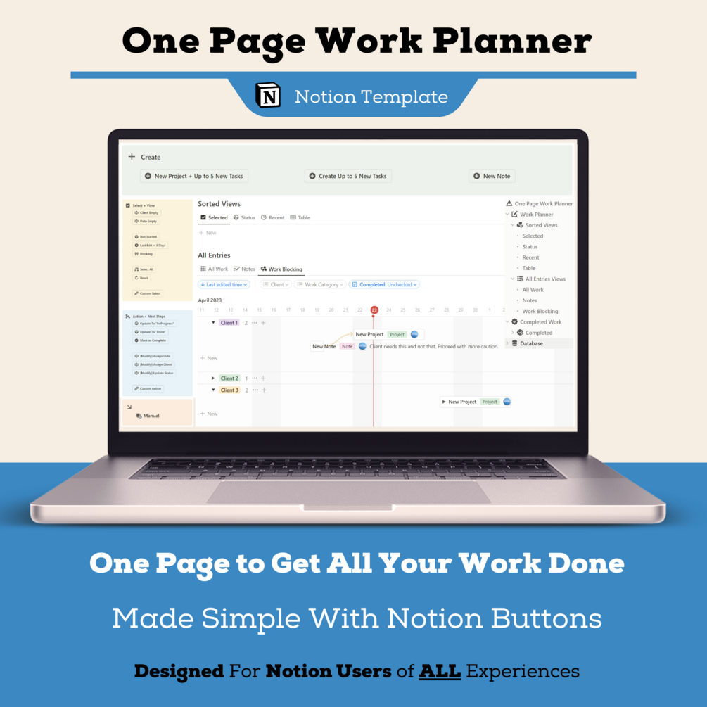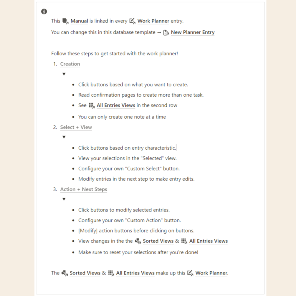 ↪ You never have to leave the one page work planner since everything is built into the page!
